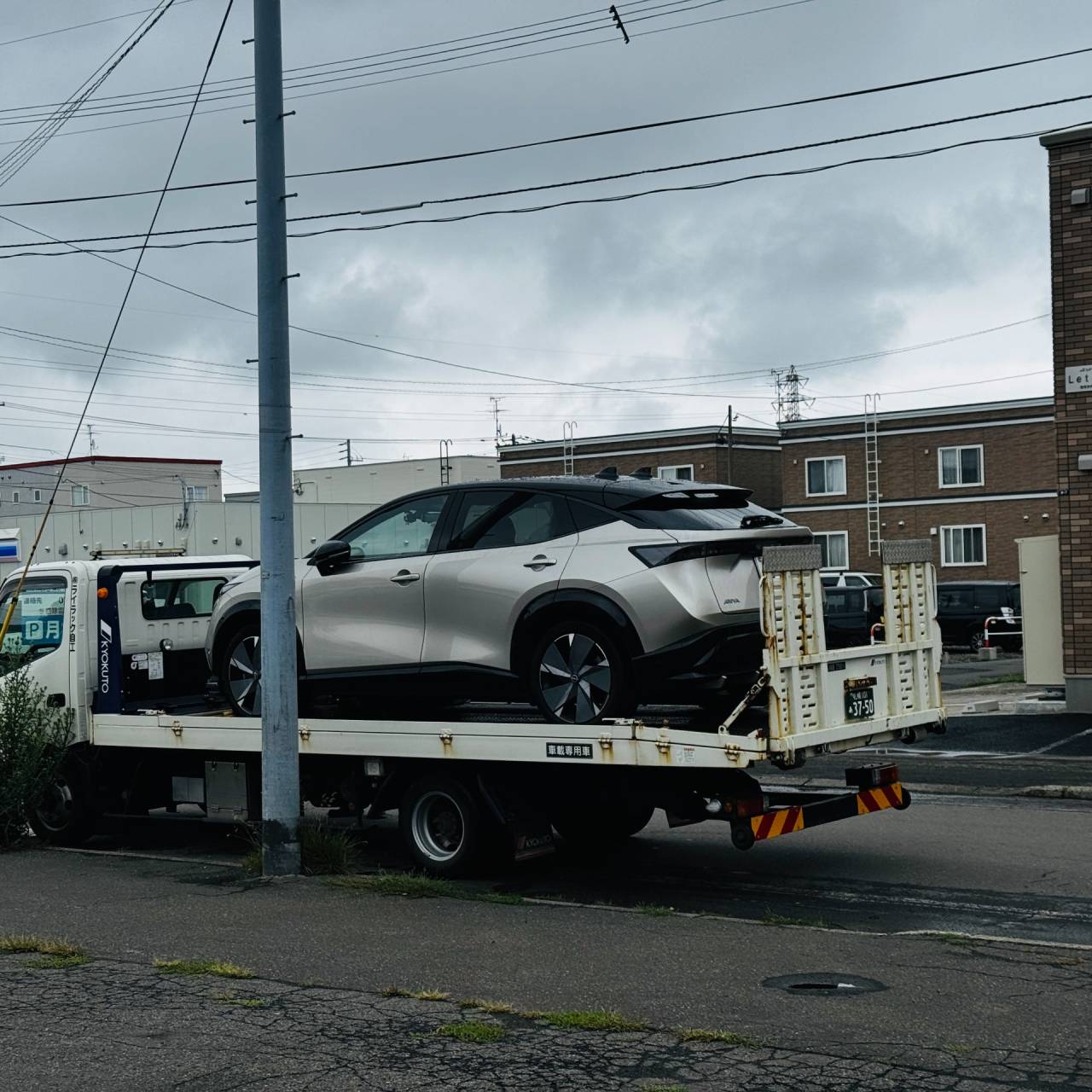 さて、前回は走行中にタイヤがパンクしてしまった【アリア B9 e-4ORCE】をJAFにお願いをして自力走行出来るように応急処置をしてもらったが、レッカー搬送をしなければ任意保険の代車特約が使えない事を知り、困ってしまっていた所までを書き留めていました。
